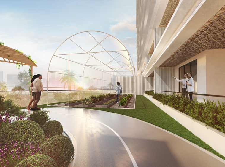 Marquis Insignia at Arjan Dubailand presents an exclusive range of amenities. Residents are enveloped in a tranquil environment with lush greenery, fostering a harmonious connection with nature. The development boasts a diverse range of world-class facilities, including a botanical garden, an open gym, sunken pool seating, a multipurpose hall, an Olympic-size infinity sky pool, outdoor seating, and a serene tranquil zone. Additional features comprise a barbeque area, kids’ play area, cinema hall, jogging track, floating yoga deck, meditation deck, and a unique rainforest-themed podium.